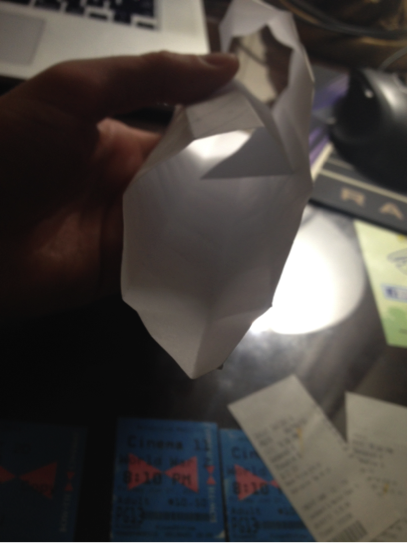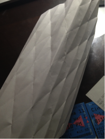 The one of the primary attributes of the measuring cup that we are re-designing is the collapsibility. When contemplating the collapsible functionality, I wanted to explore different fold patterns that would produce a collapsible effect. I started with a square to reproduce a complicated fold pattern I discovered on line. The online version had a pattern, but I wanted to produce this from scratch to understand the precision of the pattern.
