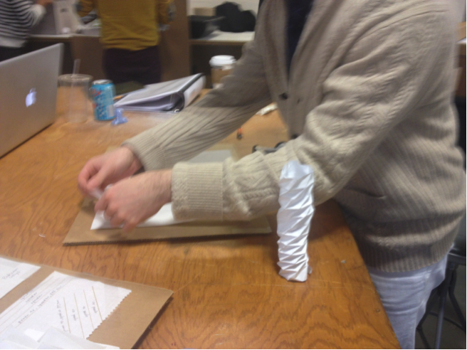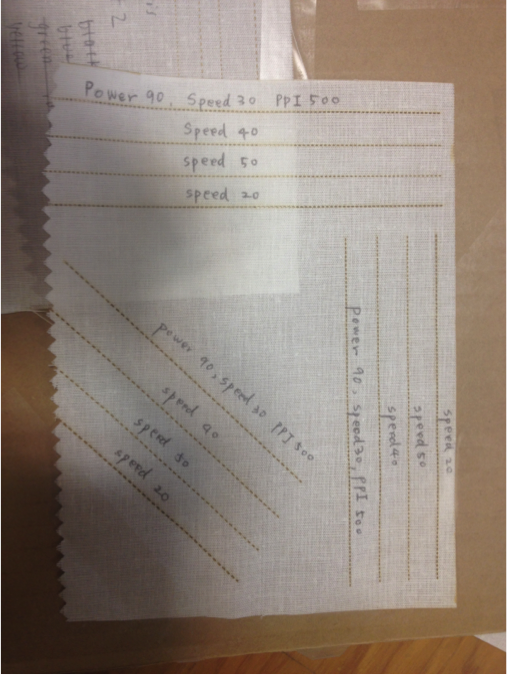 I tried to recreate the process using buckram. I was able to use an adobe illustrator file that contained the line pattern that I manually created in the first prototype. This file allowed me to use the laser cutter to cut perforations in the buckram. I wanted to use buckram because it is much sturdier than the printer paper I originally used. I have also listed the settings I used for the laser cutter below.
