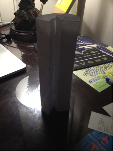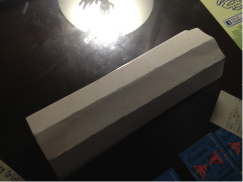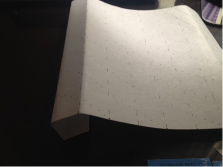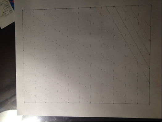 After I completed the square, I drew dotted lines ¾ inches a part. These lines would later be folded upward in the same direction. These liens were drawn vertically, but also diagonally across the page.