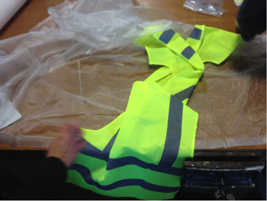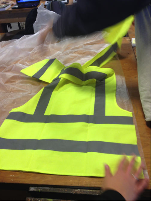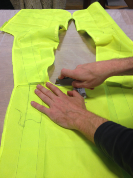 We started to construct the template using a safety vest as a pattern.